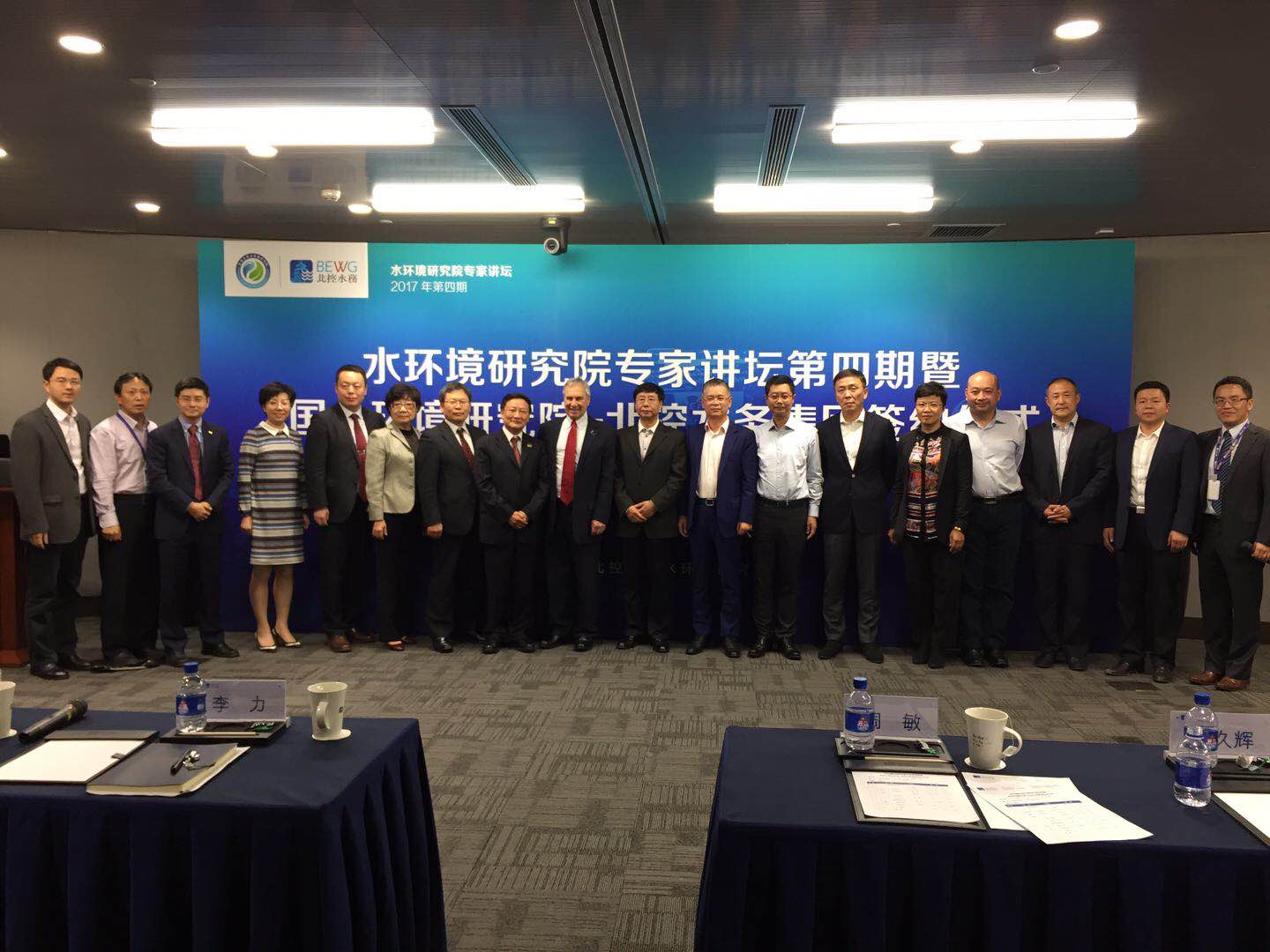 2017年10月17日下午,在北控水务集团11楼会议室隆重举行了国合环境研究院与北控水环境研究院合作框架协议的签订仪式。国合环境研究院院长王晓昌教授,国合环境研究院国际顾问委员会主席、国际水协前主席、美国水理事会首席技术官David Garman教授,国合环境研究院国际顾问委员会委员、日本东北大学李玉友教授,国合环境研究院常务副院长张琼华博士,作为国合环境研究院代表莅临出席。北控水务集团执行董事、总裁周敏,集团董事、执行总裁李力,集团高级副总裁、水环境研究院院长杨光,集团副总裁、北部大区总经理王助贫,集团顾问总工程师、技术委员会主任杭世珺,集团水环境研究院常务副院长冯艳霞等数十位北控水务高管均亲临签约现场。此外,清华大学教授、中国工程院曲久辉院士,国际水协大中华地区总监李涛博士也受邀莅临见证了合作框架协议签订。
