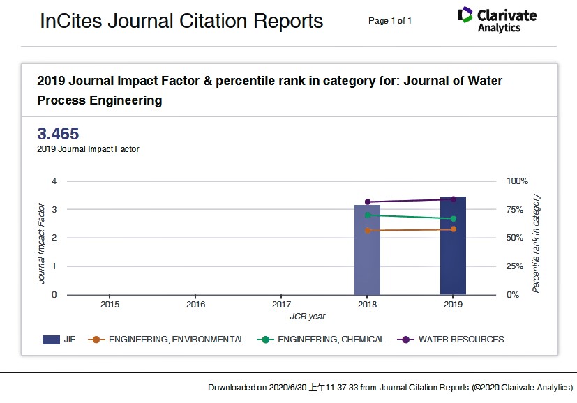 根据Journal Citation Reports(JCR)公布的最新数据,由王晓昌教授担任主编的SCI期刊Journal of Water Process Engineering (JWPE) 2019年最新期刊影响因子(IF)提升为3.465 (2018年期刊IF为3.173)。